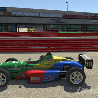 All 21 drivers eagerly awaited the disappearance of the red lights on the gantry - AND THEY'RE GONE! It's a good start from everyone, Coffin slightly bogs down off the line and is swamped by a couple of cars. Into the Copse they all go for the first time, it's three wide between Daman, Gaffney and Seal - Seal being the latest of the brakers - Coffin too brakes a little late, but as (Derek) Roodenberg moves over to take his racing line, Coffin increases the brake pressure and turns right into the corner- sightly losing the back end in the process. At this point there are have a dozen cars within a meters width of one another.....