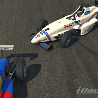 Van Weert would run wide at the final corner, giving Wood back 6th place - but with a hungry Banks on his tail. Teymourian (A lap down) would also look up the inside. Starting the next lap, Luccheta would then pass Truswell for 9th place. A lap after this (Lap 7), Bradley would get Truswell under braking into turn one...corners ahead...disaster was about to strike. Lap 8. Reski (pictured above) was released from the pit-lane after his mechanics repaired his car. He was released in the worst possible place - the gaggle for 6th. Wood followed by Banks followed by Van Weert in an intense battle - the last thing they needed was traffic.