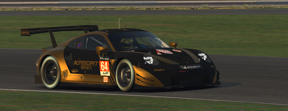 Andy Jones Qualified: 14th (Cox) After an absolutely staggering qualifying from all three teams - the whole Kabort garage were thoroughly pumped for this race. KBM Ferrari Having last started a race at Suzuka the previous season, I had no idea how well max would fair in a 6 hour endurance race....and it turned out....very bloody well! Maxim managed to keep the car in one piece and on the podium for the whole of his double stint, Nash would only get in and one better this - by putting the little gold Merc in front - yes there was a couple of spins here and there, but alas, he kept it out of the wall - and in front. Trouble would only start in the penultimate stint of the race, when Nash would drop to 4th - still recoverable - yet I wanted a go. Having waiting 5 hours for a stint, I got in with the last 45 (or so) minutes...but since I wasn't at the pace of Nash and Maxim - the Kabort car dropped down the order - out of the top 5 - only just keeping 10th as the checkered fell. It may have been a slightly dampened way to finish, but it told us something massive - we had potential. Massive potential. Max and Nash had single handily almost given Kabort their first win - and had luck been different (and maybe had I not been in the car) I truly think we could have put something shiny on the mantelpiece. Kabort Affinity and Global will help to push this - and hopefully, not too far into the future - that day will come when Kabort can say "we have a race win" Porsche 911 RSR GTE After gaining a total of 4 places on the first three laps - Losing 9 on the forth was certainly the last thing Sam wanted. Despite a good Stint, it turned out to be all for nothing as the repairs for the car put them in plum-last.