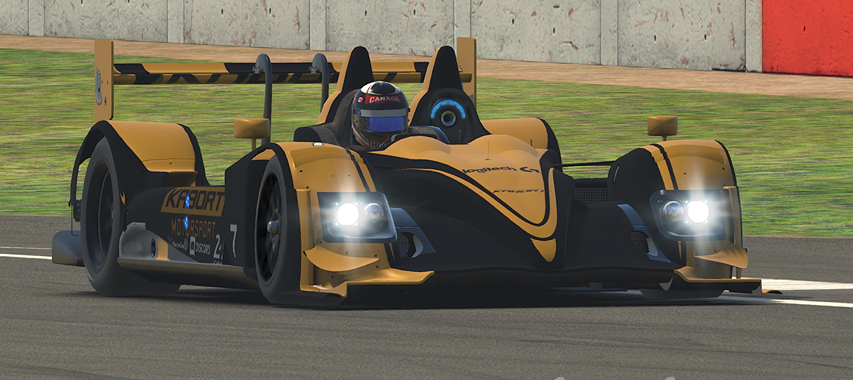 The livery represented the Black and Gold livery taking over from the blue I livery I had, the fade being the most important as the Light Blue of my Mazda days "faded out" of existence. With such a grand livery paying Homage to a crazy season of racing (which included a podium, and three Top 5's, I was expecting to end the season on a high....but unfortunately luck had other ideas.... After getting a decent start, the cars ahead of me bottle-necked slightly, slowing everyone down. As I had momentum, I used it...which unfortunately meant using (too much?) dirt. Weather intentional or not, the guy behind me was far too late/confident on the brakes and bumped into me, putting me into a half-spin. He too, spun...but it was a big shame. I was in a bad mood for the rest of the race, and in the end got myself disqualified for off-tracks, but the story goes that I had too much damage after the turn one incident... Lucky Le Mans 777 Series, Season 1, Week 13